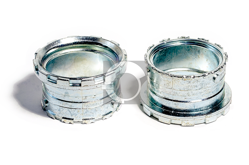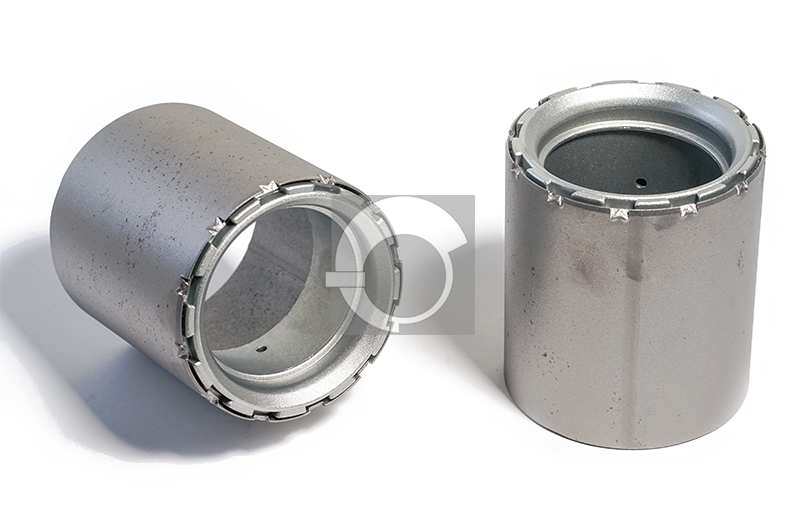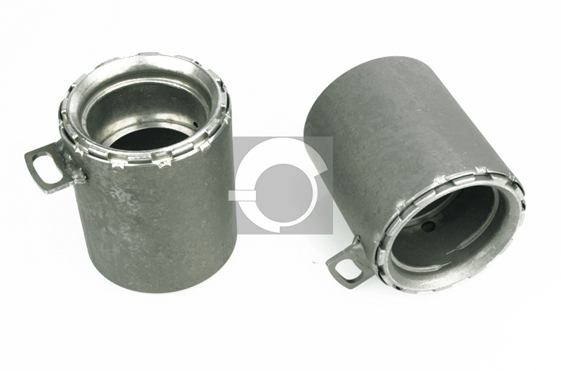 Zamak filler neck calked on steel tube to be welded on metal tank, with padlock attack